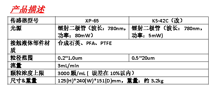 。廣泛的可測粒徑范圍XP-65:0.2μm~1.0μm,KS-42C(改):0.5μm~20μm