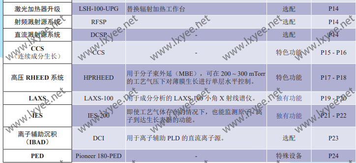 • 升級選項:離子輔助 PED、連續(xù)成分生長 PED、進(jìn)樣系統(tǒng) Load-Lock。