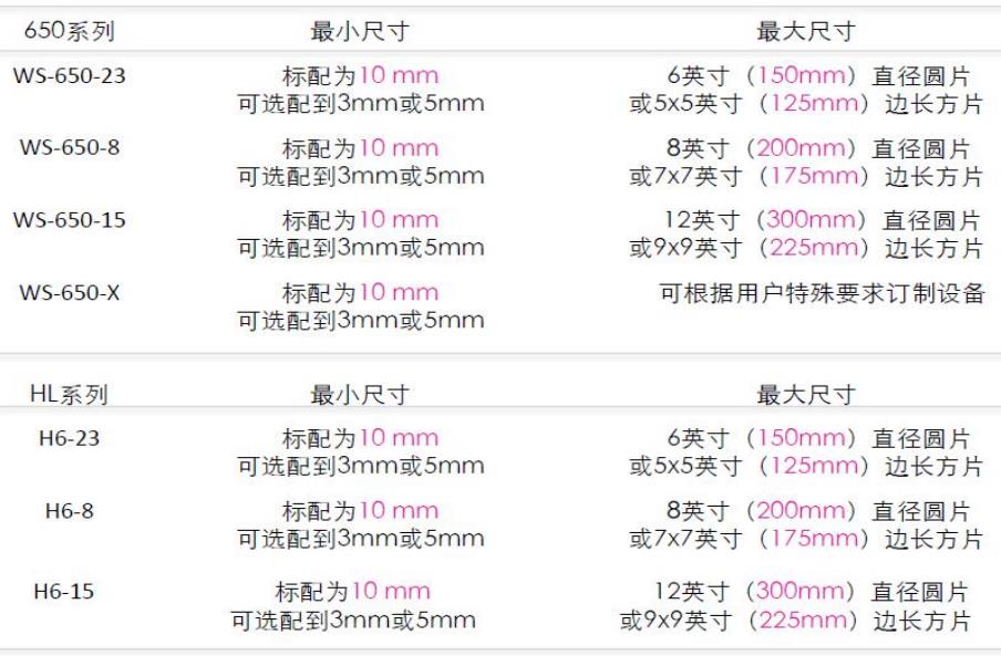適用旋涂材料的尺寸范圍: