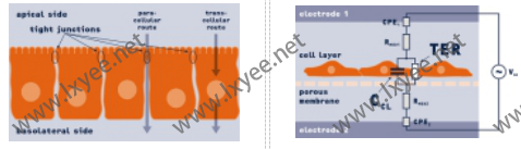 細(xì)胞屏障的通透性可以通過跨膜電阻(即TEER,Transepithelial resistance)來反映,細(xì)胞屏障的通透性與跨膜電阻TEER之間的關(guān)系為:通透性越高TEER越低,反之亦然。