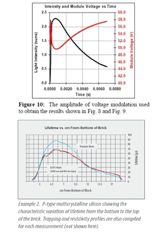美國Sinton WCT-120少子壽命測試儀器采用了獨(dú)特的測量和分析技術(shù),包括準(zhǔn)穩(wěn)定態(tài)光電導(dǎo)(QSSPC)測量方法??伸`敏地反映單、多晶硅片的重金屬污染及陷阱效應(yīng),表面復(fù)合效應(yīng)等缺陷情況。WCT在大于20%的超高效率太陽能電池(HIT,MWT,EWT,PREL,等等)的研發(fā)和生產(chǎn)過程中是一種被廣泛選用的必備檢測工具。這種QSSPC測量少子壽命的方法可以在電池生產(chǎn)的中間任意階段得到一個類似光照IV曲線的開路電壓曲線,可以結(jié)合最后的IV曲線對電池制作過程進(jìn)行數(shù)據(jù)監(jiān)控和參數(shù)優(yōu)化。