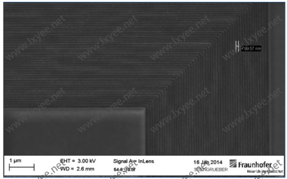 remarkable 67 nm could be realised, whereby the sophis ticated structural element shows a very regular pattern.
