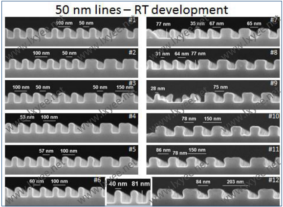 For the fabrication of 10-nm trenches (174 nm film, 100npitch), AR 6200.09 requires a dose of approx. 220 pC/cm(30 kV, developer AR 600-546)。