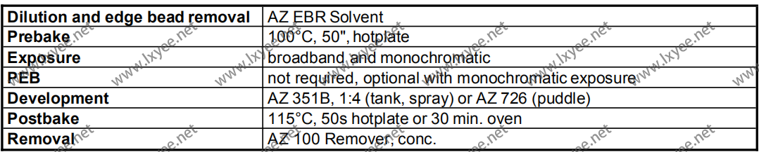 This AZ Photoresists are made up with our patented safer solvent PGMEA. They are flammable liquids and should be kept away from oxidants, sparks and openflames.
