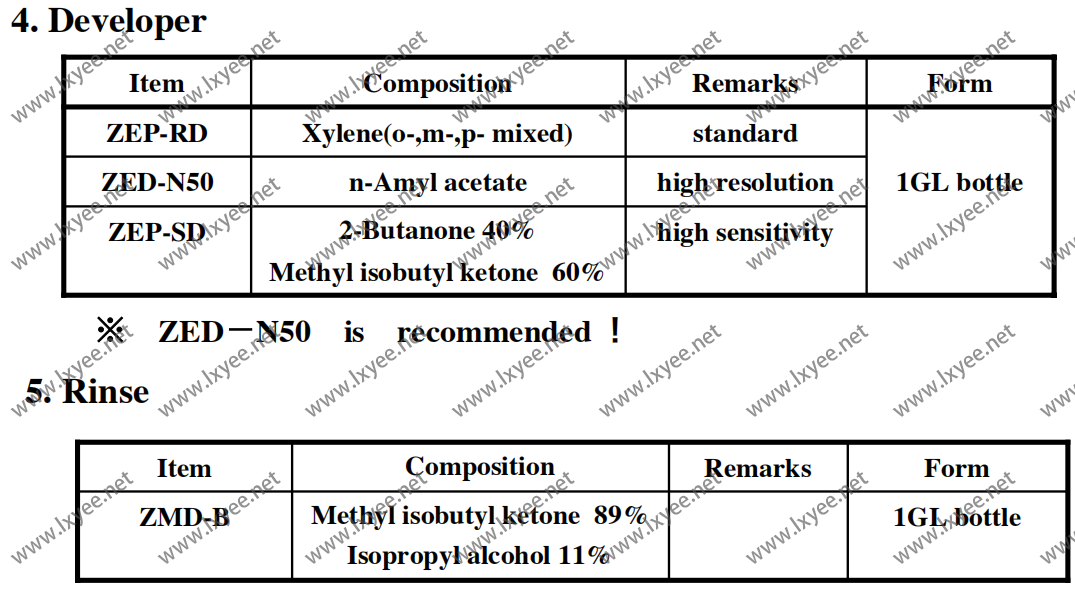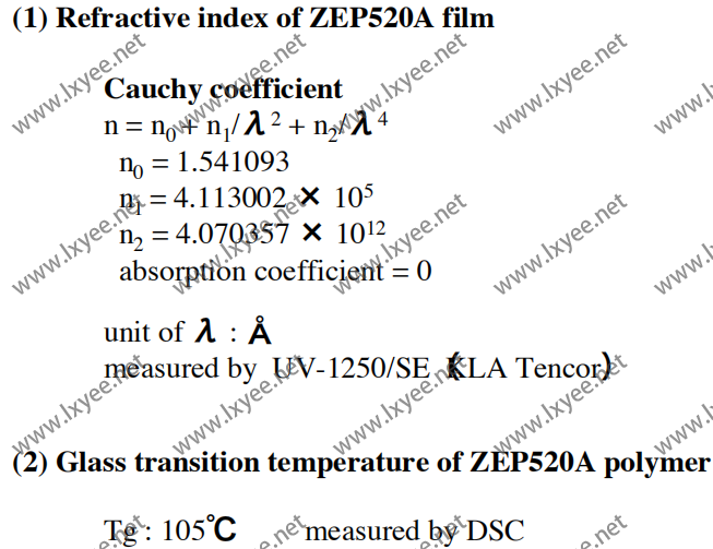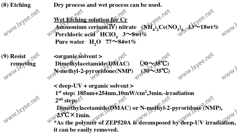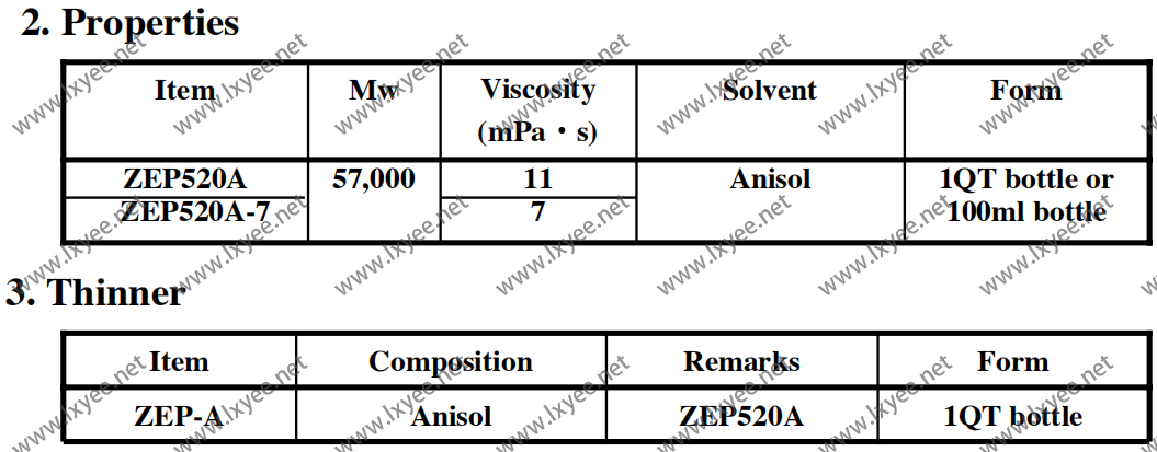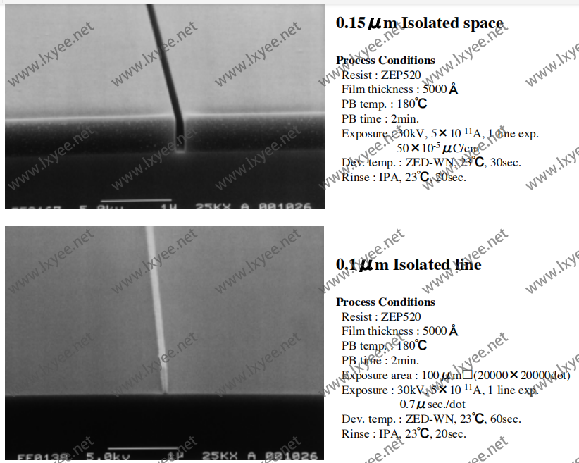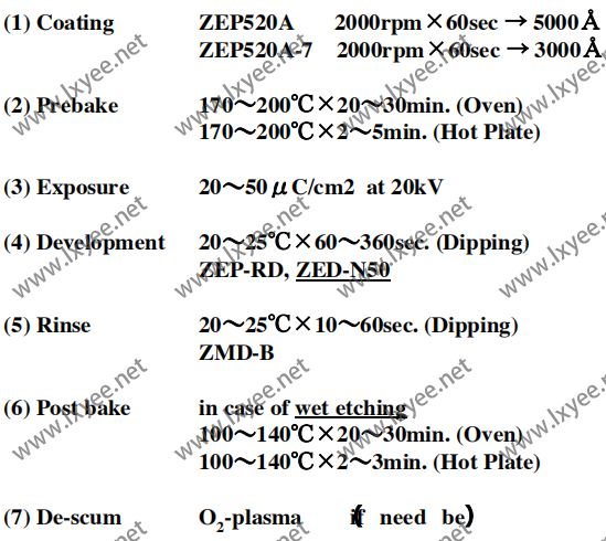 ZEP520A is high performance positive EB resists which show high resolution, high sensitivity and dry etch resistance.