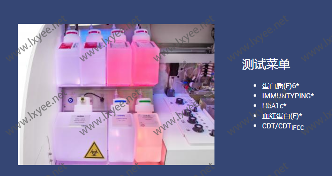 該多參數(shù)儀器提供了血清、尿液和全血蛋白質(zhì)、免疫分型、HbA1c、血紅蛋白和碳水化合物缺乏轉(zhuǎn)鐵蛋白(CDT)檢測(cè)的綜合菜單。