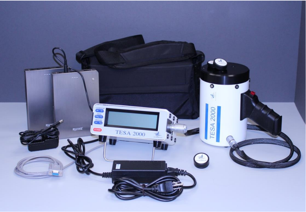 TESA 2000儀器由三個主要部件組成:測量頭、測頭、測頭控制/顯示單元,以及供電系統(tǒng)(圖2-1)。頭和控制/顯示單元是由四英尺半的電纜連接,可以斷開在任何一端。控制/顯示裝置為測量頭提供電源,并包含儀表控制和一個標準串口與PC機通信。電源系統(tǒng)由一個AC/DC適配器和兩個可充電電池組成(可選)、便攜包(可選)、電池充電器(可選)(如圖2-2所示)。的,崎嶇的滾動手提箱(圖2-3)將容納所有的TESA 2000硬件。(請注意,如果使用作為一個實驗室單元,你可以選擇不包括電池,背包和電池充電器)。