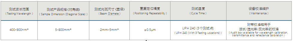 檢測(cè)標(biāo)準(zhǔn):100 ± 0.5(%), GR & R: <15%, 相關(guān)性: R2>0.85(@450 - 900nm)
