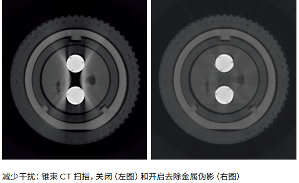 對于由塑料和金屬材料組成的復(fù)合部件,MAR可大幅減少干擾導(dǎo)致的低密度材料在圖像上“消失”的情況。