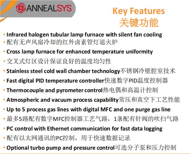 法國Annealsys高溫退火爐AS-OnePlus,多用途立式快速熱處理設(shè)備,適用于硅,化合物半導體,太陽能電池& MEMS