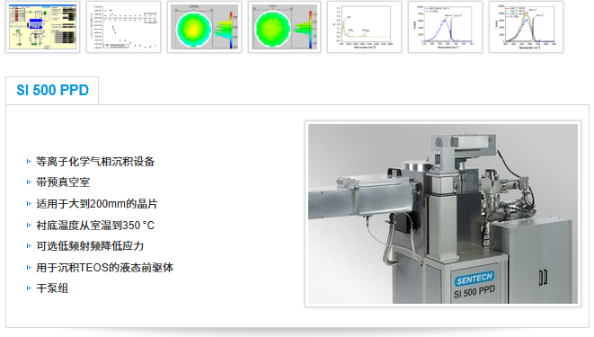 PECVD沉積設(shè)備SI 500 PPD便于在從室溫到350℃的溫度范圍內(nèi)進(jìn)行SiO2、SiNx、SiOxNy和a-Si的標(biāo)準(zhǔn)的化學(xué)氣相沉積工藝。