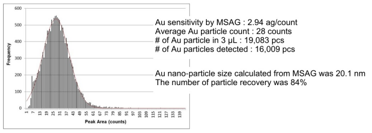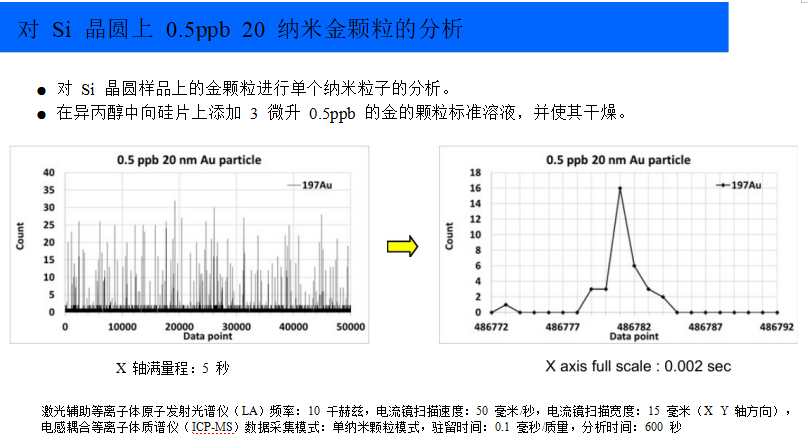 ICP-MS 數(shù)據(jù)采集模式:?jiǎn)蝹€(gè)納米顆粒分析,駐留時(shí)間:0.1 毫秒/質(zhì)量,分析時(shí)間:60 秒